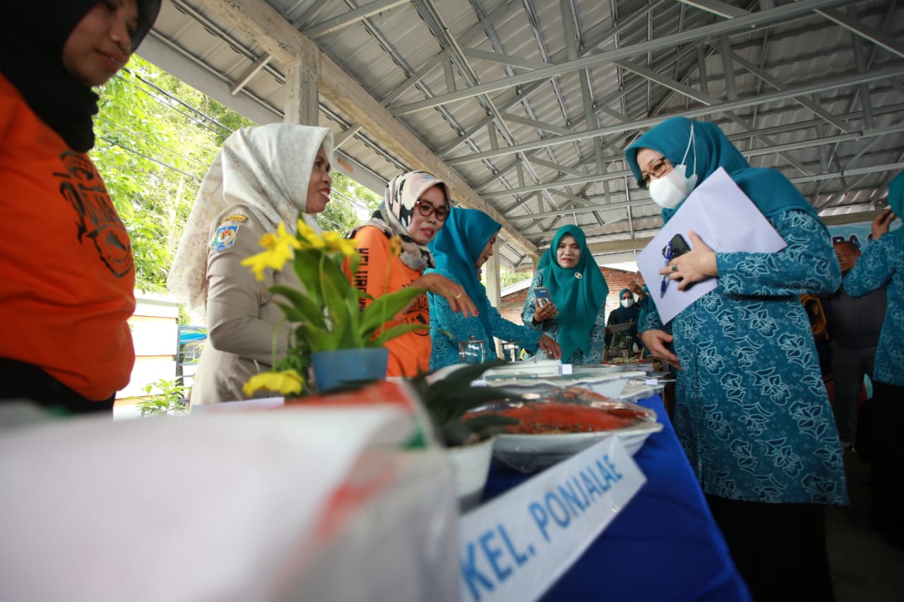 MEDU-ONLINE, PALOPO | Ketua PKK Kota Palopo, dr Hj Utia Sari Judas MKes membuka lomba cipta menu dalam rangka menyambut hari jadi kota Palopo ke-20, di halaman kantor kecamatan Wara Timur, Selasa (28/06/2022).