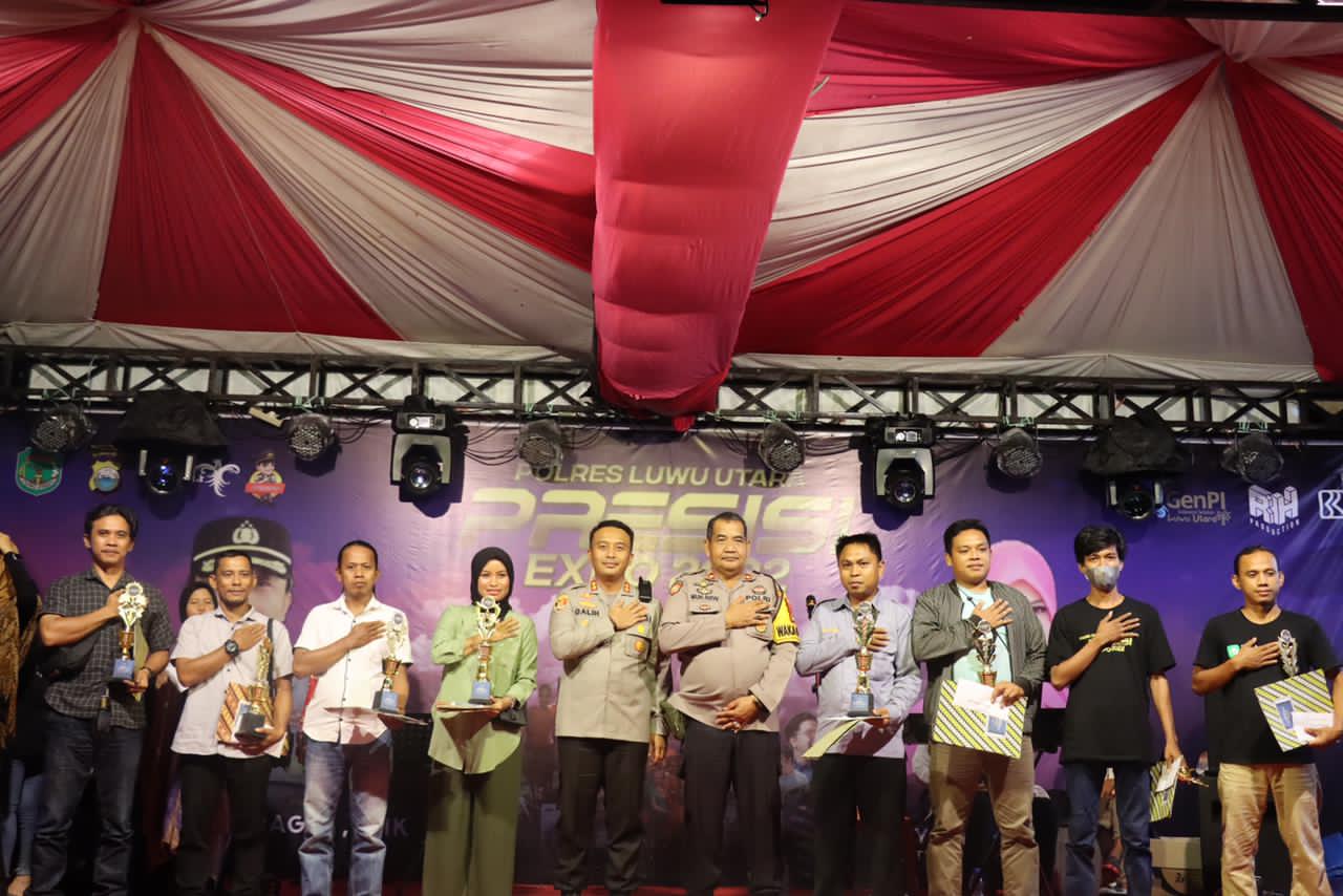 MEDU ONLINE, LUWU UTARA — Dipenutupan kegiatan Polres Luwu Utara Presisi Expo 2022, Kapolres Luwu Utara, Akbp Galih Indragiri menyerahkan hadiah kepada para pemenang lomba, Minggu (4/12/2022) malam.