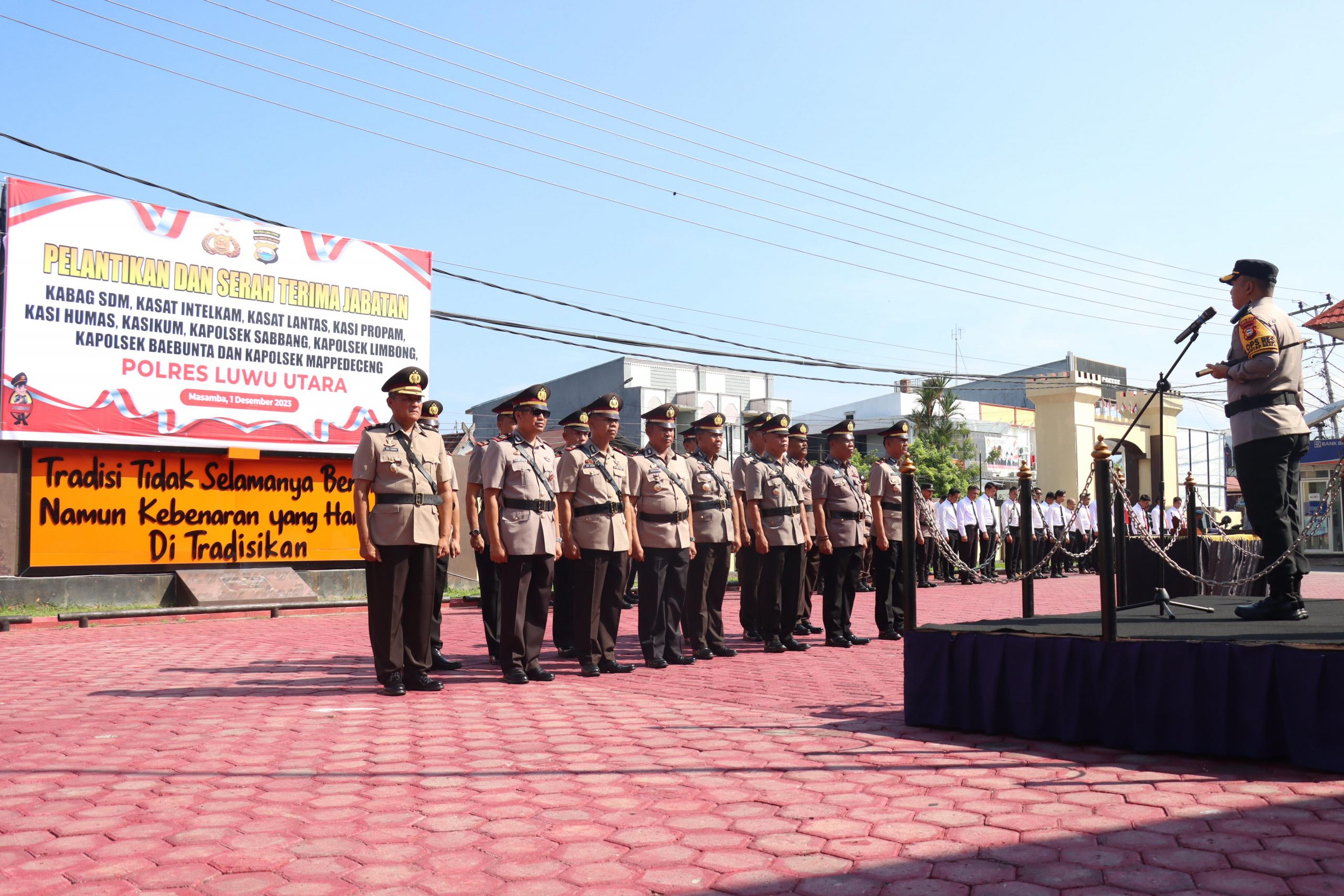 Hal itu disampaikan Kapolres Luwu Utara ditengah amanat usai prosesi penandatangan berita acara serah terima dan pakta integritas dalam rangkaian upacara pelantikan dan serah terima jabatan pejabat baru dan lama di lapangan upacara Sarja Arya Racana mako Polres Lutra.