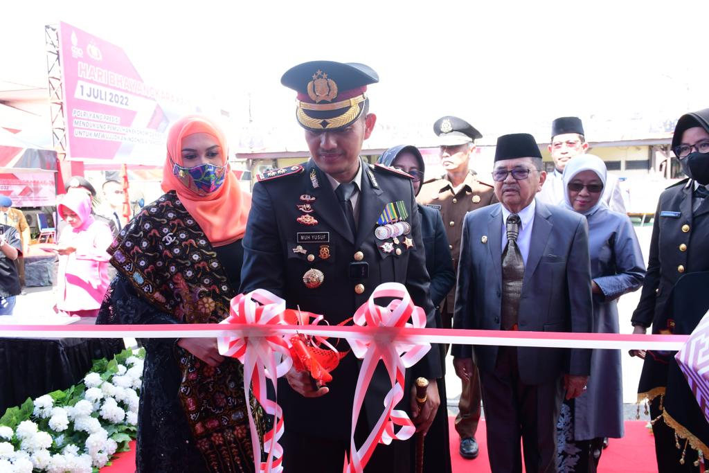MEDU-ONLINE, PALOPO | Selepas mengikuti upacara virtual HUT Bhayangkara ke-76 yang dipimpin Presiden RI, Ir H Joko Widodo, Selasa (5/7/2022), Kapolres Palopo, AKBP DR (C) HM Yusuf Usman SH SIk MT, meresmikan Aula Tantya Sudhirajati Mako Polres Palopo, Walikota Palopo, Drs HM Judas Amir MH, menyaksikan langsung pengguntingan pita oleh Kapolres sebagai tanda diresmikannya aula tersebut.