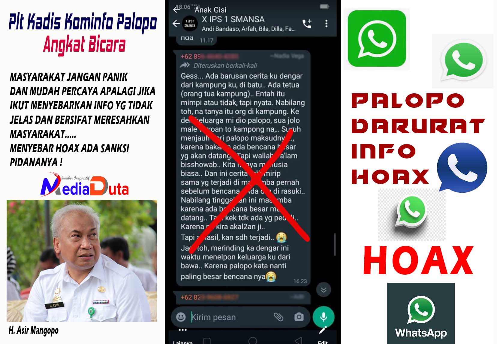Lantas bagaimana Plt Kepala Dinas Kominfo Kota Palopo, H. Asir Mangopo menanggapi soal info hoaks yang banyak beredar tersebut?