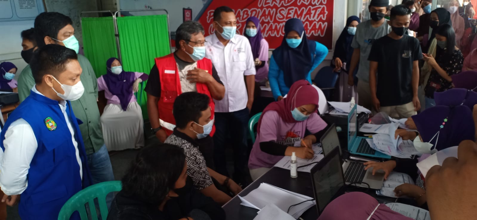 MEDU-ONLINE | PALOPO — KNPI Palopo, HIPMI dan PMI Palopo berkolaborasi menggelar vaksinasi covid-19 yang dipusatkan di markas PMI, Jumat (17/9/2021).