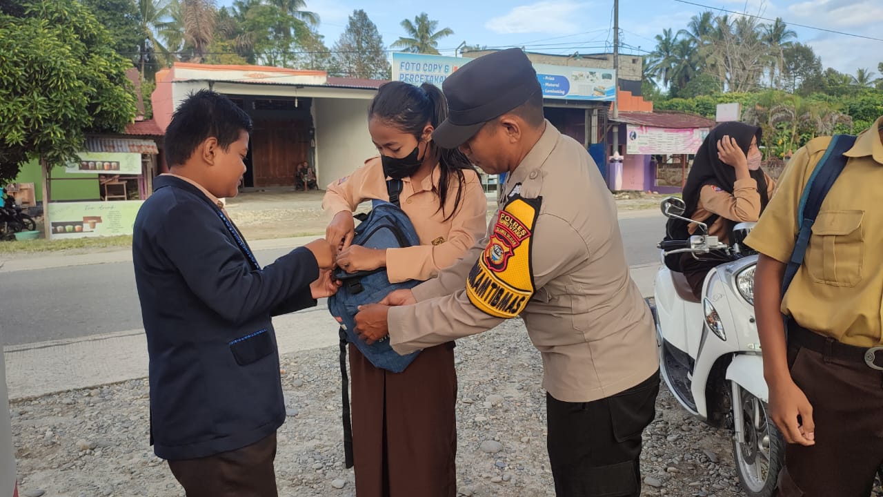 Kapolsek juga mengatakan bahwa, untuk mengantisipasi siswa-siswi membawa barang terlarang, personilnya melakukan pemeriksaan tas siswa-siswi.