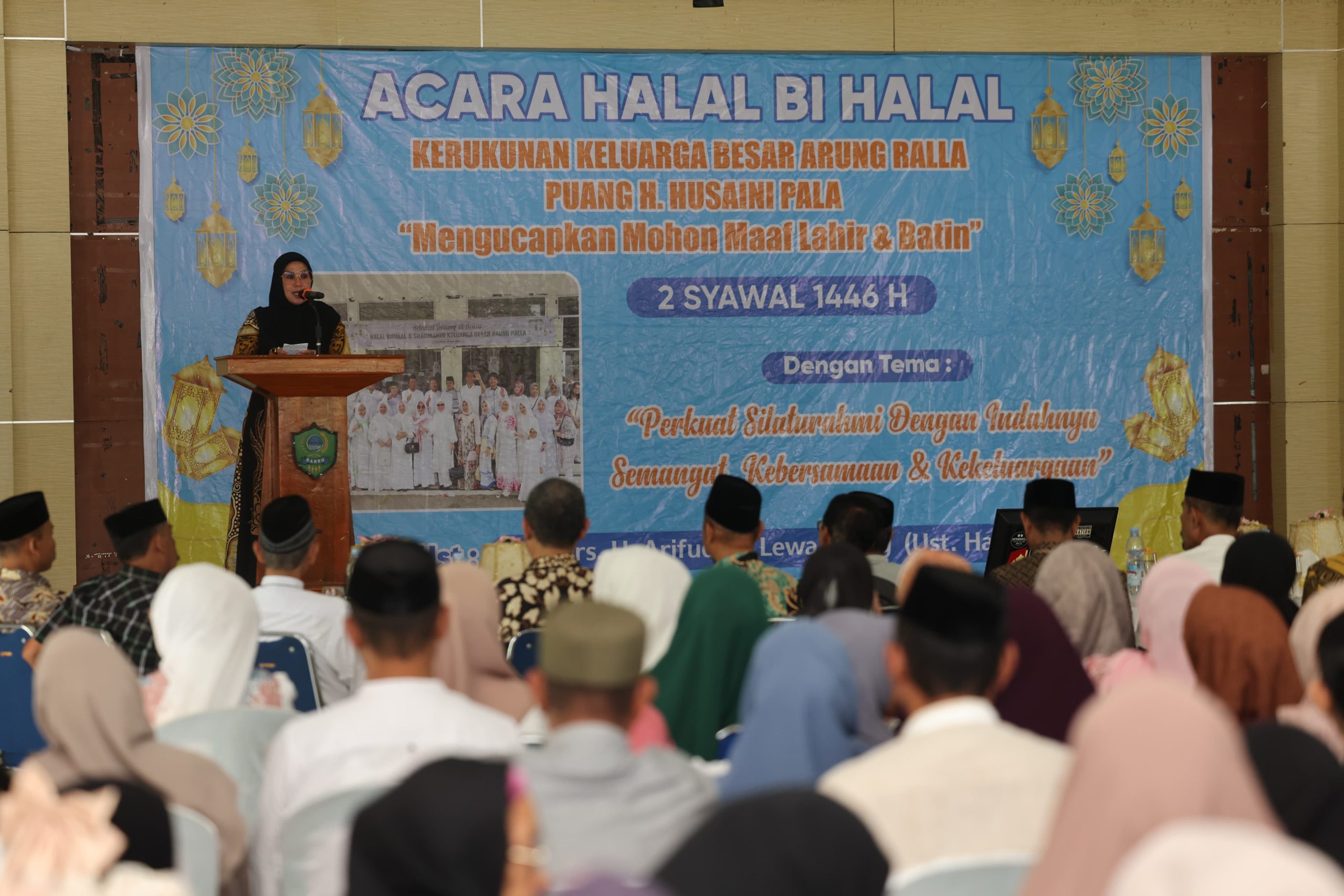 MEDIA DUTA,BARRU-Bupati Barru Andi Ina Kartika Sari, SH. M. Si menghadiri acara halalbihalal Kerukunan Keluarga Besar (KKB) Arung Ralla, Puang H. Husaini Pala, di Baruga Bola Soba’E Barru, Rabu (02/04/2025).