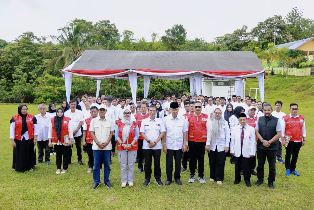 MEDIA DUTA,BARRU – Bupati Barru, Andi Ina Kartika Sari, SH., M.Si., bersama Wakil Bupati Barru, Dr. Ir. Abustan A. Bintang, M.Si., hadiri Pelantikan Pengurus Palang Merah Indonesia (PMI) Tingkat kecamatan se-Kabupaten Barru Masa Bakti 2025 – 2028, Minggu (30/11/2025).