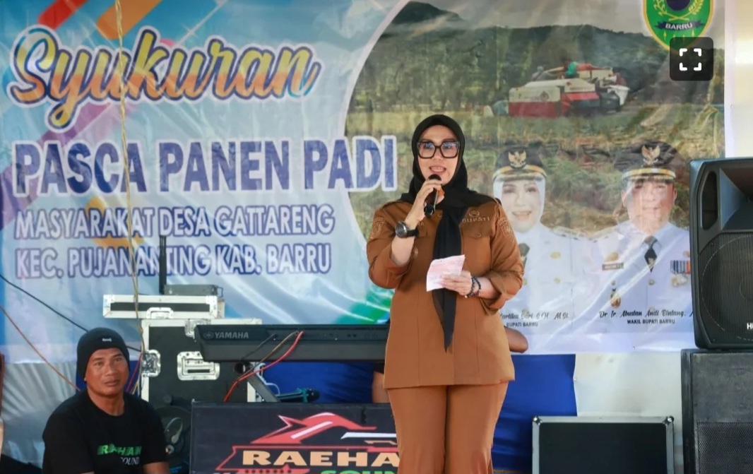 MEDIA DUTA,BARRU – Bupati Barru, Andi Ina Kartika Sari, menghadiri acara syukuran pasca panen yang digelar masyarakat Desa Gattareng, Kecamatan Pujananting, Senin (11/08/2025).