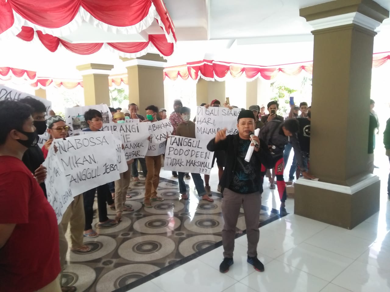 Setelah orasi di jalan poros trans Sulawesi mereka melanjutkan orasinya di depan Kantor Bupati Luwu Utara hingga usai orasi bupati Luwu Utara tidak menemui para pendemo.