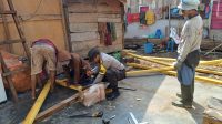 Polri Bersama Aparat Desa Gotong Royong Bedah Rumah Warga