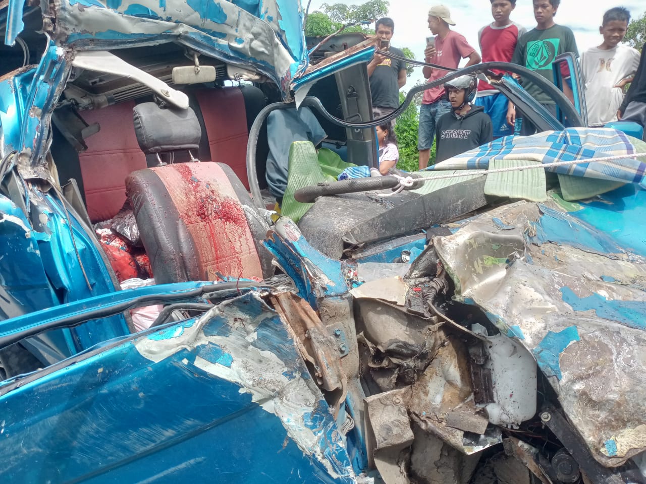 MEDU-ONLINE, BARRU | Mobil minibus Toyota Kijang warna biru dengan nomor plat DD 1882 VC terlibat tabrakan dengan sebuah mobil truk dengan nomor plat W 8335 C di KM 137-138 Desa Kupa, Kecamatan Mallusetasi Kabupaten Barru, Minggu 14 Agustus sekira pukul 10.00 Wita, kemarin.