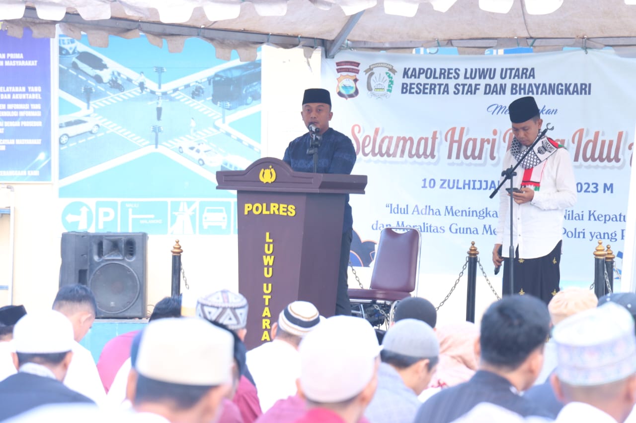 Shalat Idul Adha tersebut dilaksanakan di halaman Mako Polres Luwu Utara, Kamis (29/6/2023).