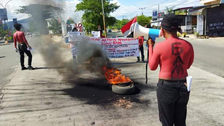Dalam aksi tersebut Komando Wilayah Gerakan Aktivis Mahasiwa Luwu Raya melakukan teatrikal cat badan dengan bertuliskan GAM dan membentangkan spanduk yang bertuliskan isu yakni “INDONESIA KRISIS KEBIJAKAN PEMIMPIN” dan tuntutanya yaitu: