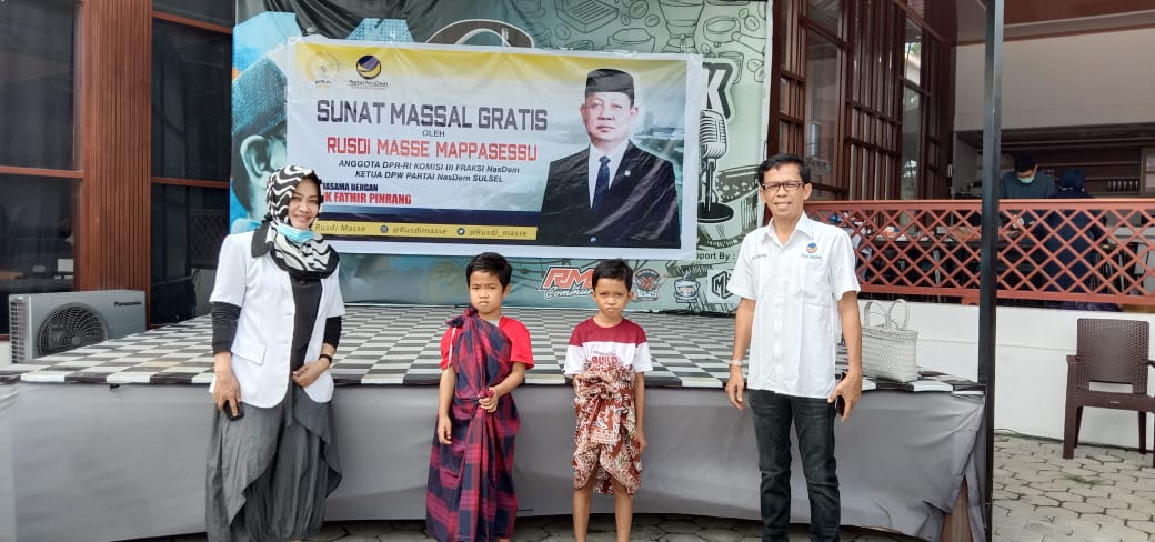 Sementara itu ketua DPD partai Nasdem Pinrang H. Faisal Tahir Syarkawi menambahkan, untuk kegiatan sunatan massal ini dilakukan secara gratis sesuai instruksi kakak ketua DPW Partai Nasdem Sulsel H. Rusdi dan sekaligus mengobati rasa rindu masyarakat Pinrang dengan bersilaturahmi dengan bapak H. Rusdi Masse, ujarnya.
