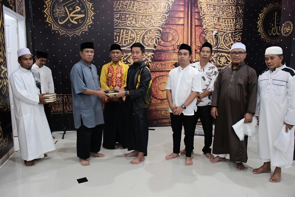 Ketua Golkar Palopo Rahmat Masri Bandaso didampingi Irfan Nawir Wakil Bendahara menyerahkan bantuan Alquran ke Pengurus Masjid Al Hatma Hatta Fastabiqul Khairat Kel. Sampoddo Kota Palopo , Jumat 08 April 2022.