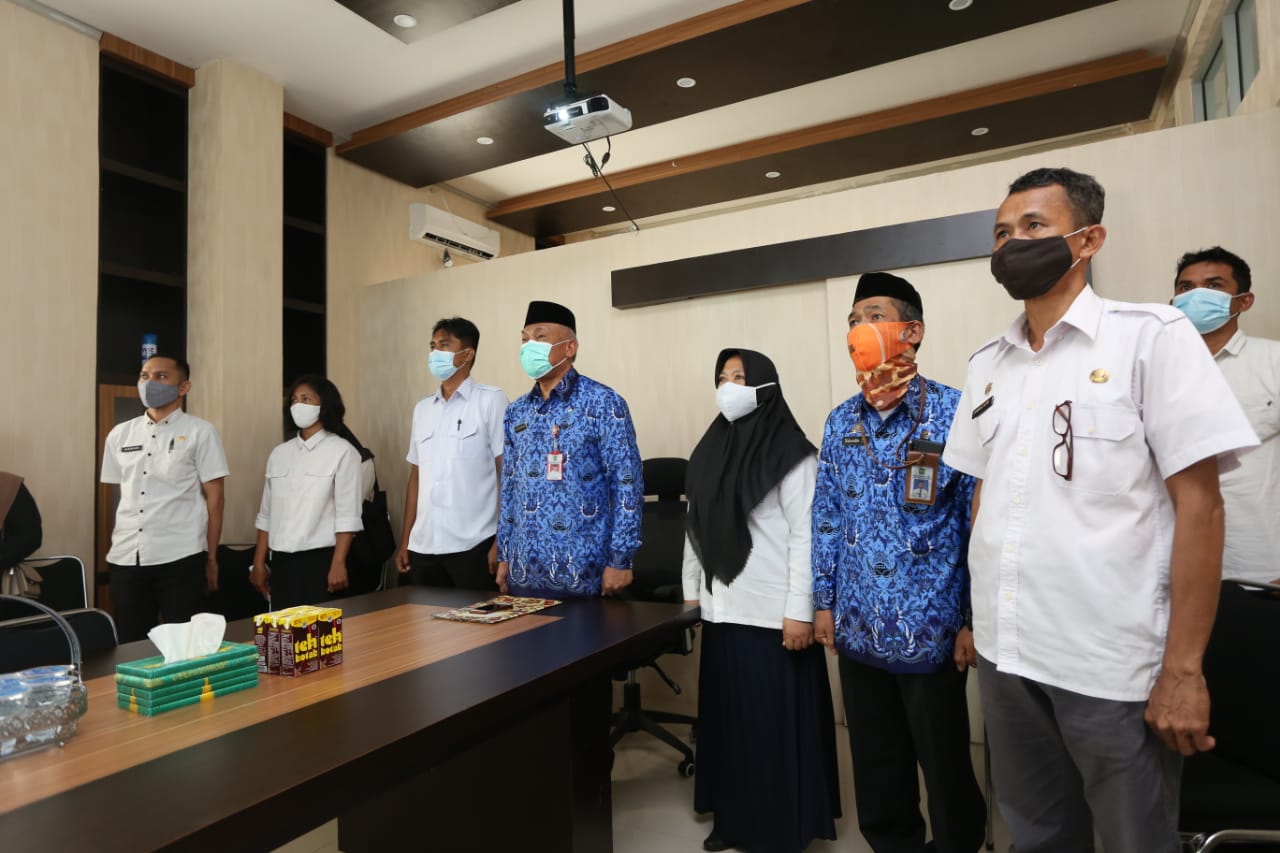MEDU-ONLINE.PALOPO — Inspektur Inspektorat kota palopo, H. Asir Mangopo bersama kepala bagian pengadaan barang dan jasa setda kota palopo mengikuti rapat koordinasi pengadaan barang dan jasa se- sulawesi selatan tahun 2021secara virtual di ruang kerja sekretaris daerah, kantor walikota palopo, Rabu, 17/3/2021.
