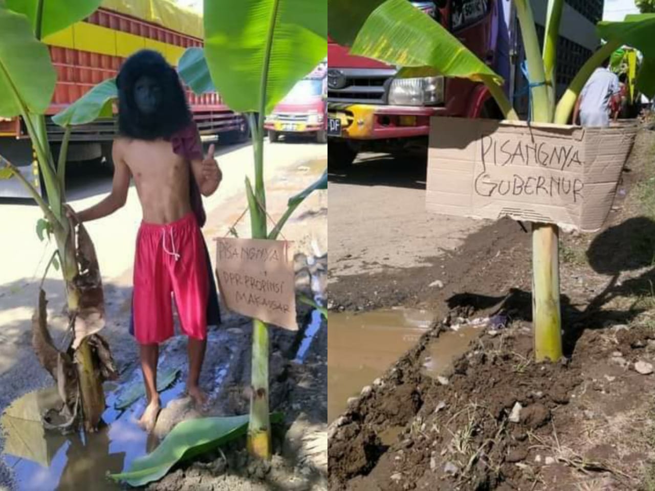Warga sampai menanam pohon pisang, sebagai bentuk kritik rusaknya jalan.