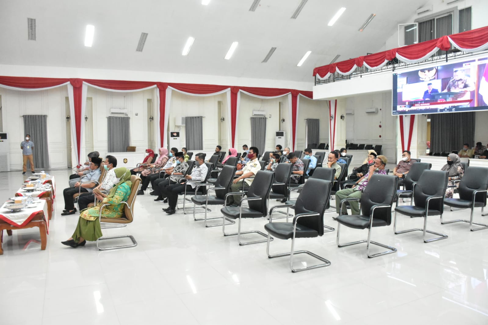 MEDU-ONLINE | PALOPO — Walikota Palopo, Drs. HM Judas Amir MH, bersama Sekda dan Jajaran Pemkot lainnya, mengikuti Webinar Launching Hasil SPI “Mengukur Tingkat Korupsi di Indonesia” secara daring di Ruang Pertemuan Ratona, Kamis (23/12/2021).