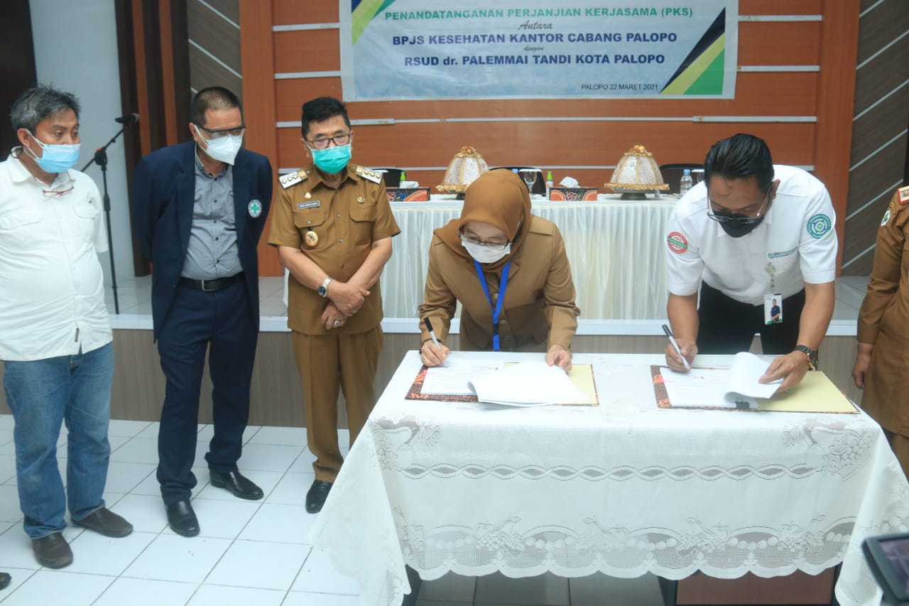 MEDU-ONLINE.PALOPO — Pemerintah Kota Palopo melalui Dinas Kesehatan Kota Palopo melaksanakan Penandatanganan Perjanjian Kerjasama (PKS) antara BPJS Kesehatan Kantor Cabang Palopo dengan RSUD dr.Pallemai Tandi Kota Palopo, yang dilaksanakan di ruang Aula RSUD dr.Pallemai Tandi Kota Palopo, Senin (22/3/2021)