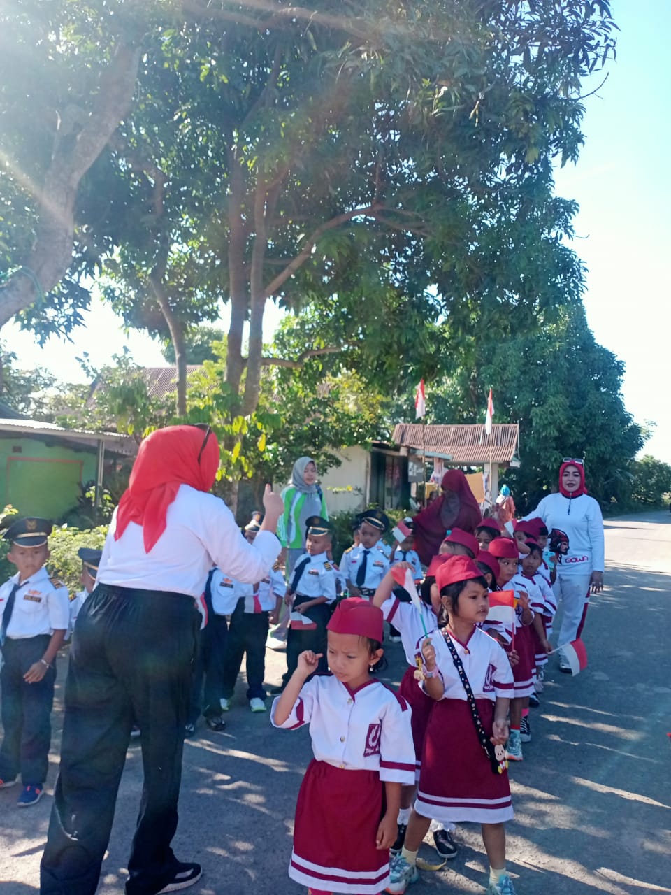 Memeriahkan hari kemerdekaan ke-77 tahun Republik Indonesia dengan baris-berbaris melatih fisik anak, kemampuan kognitif, sosial emosional, nilai agama dan moral, kemampuan berbahasa dan estetikanya juga terasah, sehingga semua aspek bisa berkembang.
