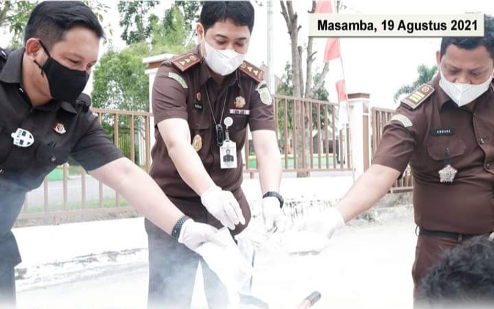 MEDU-ONLINE LUWU UTARA — Barang bukti perkara narkotika dan obat keras yang telah berkekuatan hukum tetap dimusnahkan di halaman Kantor Kejaksaan Negeri Luwu Utara, Kamis (19/8/2021).