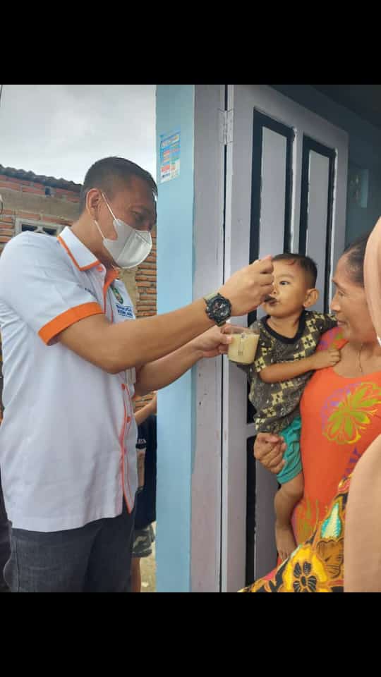 Pada kunjungan Plt.Kadis DPPKB, Farid Kasim Judas, S.H. M.Si.MH.,, tampak memberikan minum kepada anak yang kurang gizi, berupa susu balita.