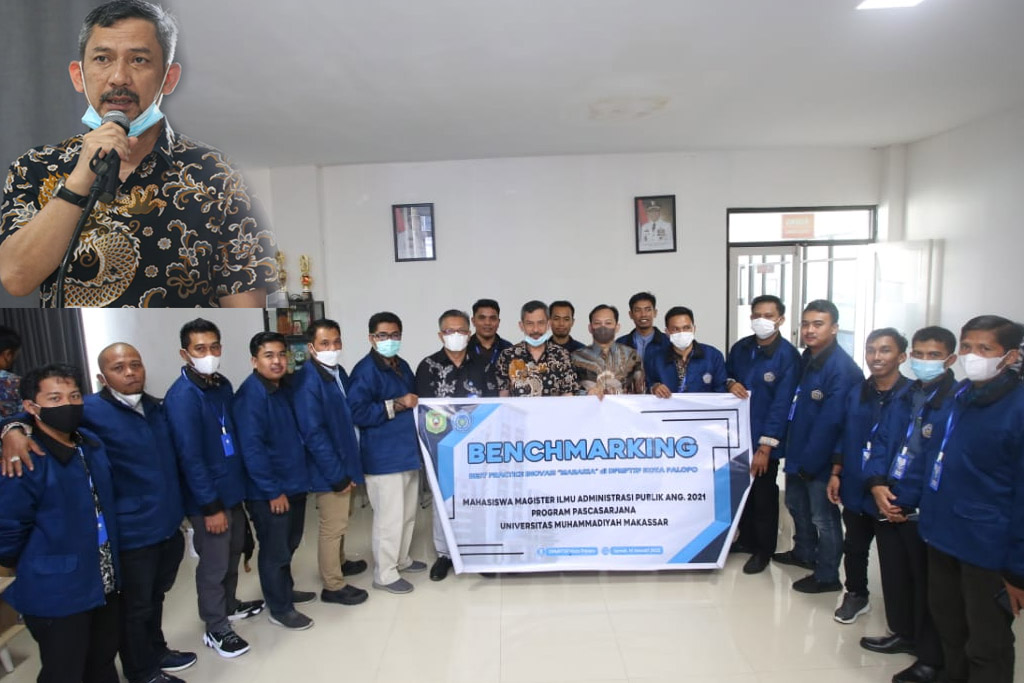 MEDU-ONLINE, PALOPO | Sekretaris Daerah Kota Palopo Drs Firmanza DP SH MSi dalam hal ini mewakili Walikota Palopo menyambut rombongan benchmarking Program Pascasarjana Universitas Muhammadiyah Makassar (UMM) terkait Penerapan Inovasi Pelayanan MABASSA, di Mal Pelayanan Publik (MPP) Kota Palopo, Jumat (14/01/2022) pagi tadi.