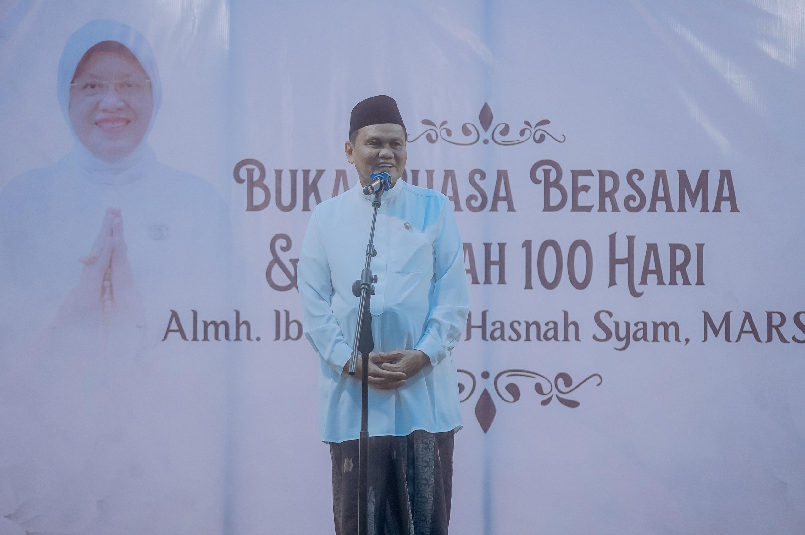 Mengawali sambutannya Bupati Barru mengucapkan puji syukur karena kita diberikan nikmat sehat dan kesempatan sehingga bisa hadir dalam acara buka puasa dirangkaikan dengan takziah mengenang 100 hari wafatnya almarhumah drg.Hj.Hasnah Syam, MARS.