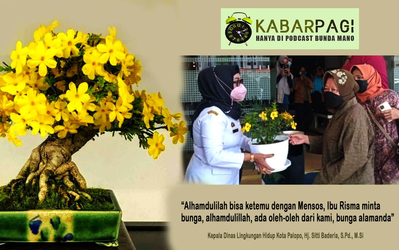 “Bunga yang disuka oleh Bu Risma itu bunga yang warnanya kuning, kayak terompet, namanya Bunga Alamanda atau biasa disebut “terompet emas” atau biasa juga disebut “lonceng kuning”. Katanya, ada sejenisnya (di Jawa) tapi merambat, sedangkan bunga Alamanda di Palopo ini unik, karena tidak merambat, bunga ini seperti dibonsai,” kata Sitti Baderiah menceritakan pengalamannya bertemu Bu Menteri.