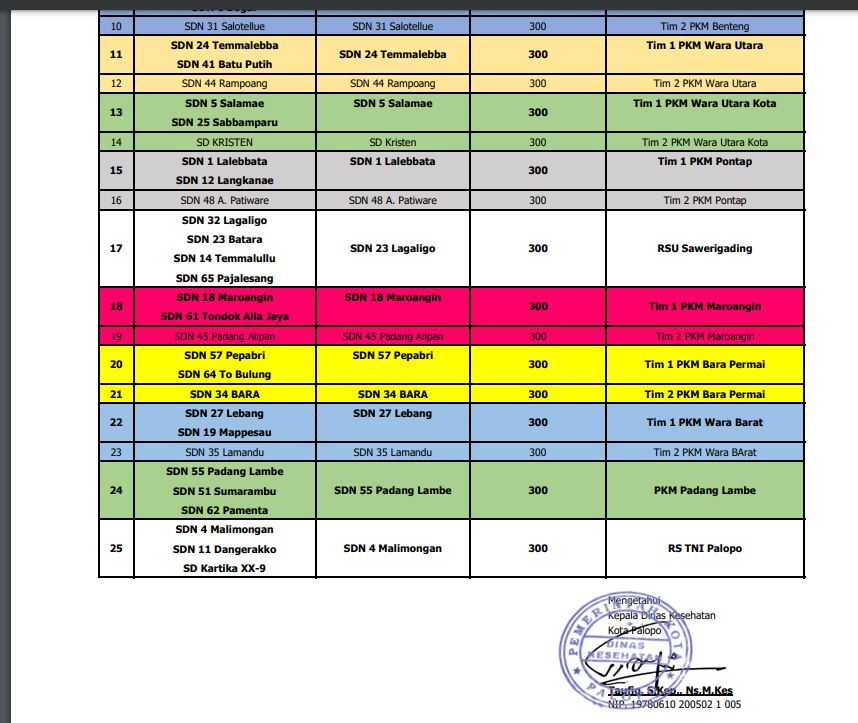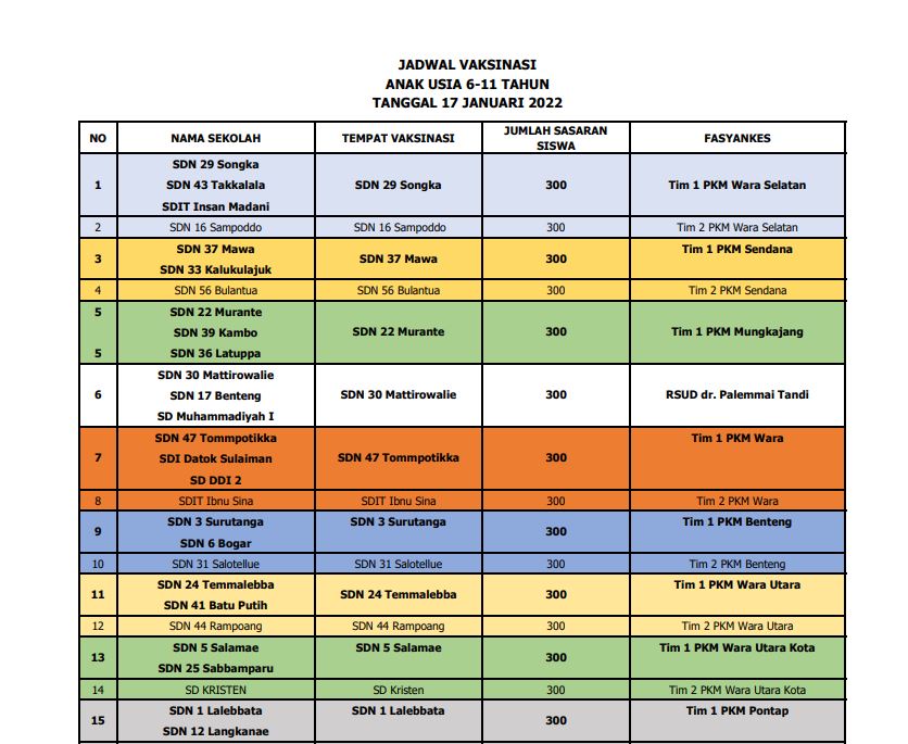 MEDU-ONLINE, PALOPO | Kegiatan vaksinasi pelajar tingkat Sekolah Dasar (SD) usia 6 sampai 12 tahun sudah mulai dilaksanakan di kota idaman Palopo, pada Senin (17/1/2022) kemarin.