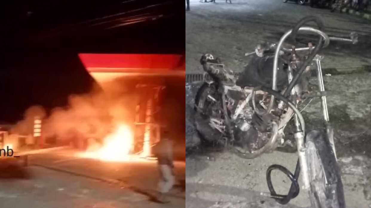 Dalam sebuah video yang beredar di media sosial, motor tersebut terbakar diduga saat melakukan pengisian bahan bakar.