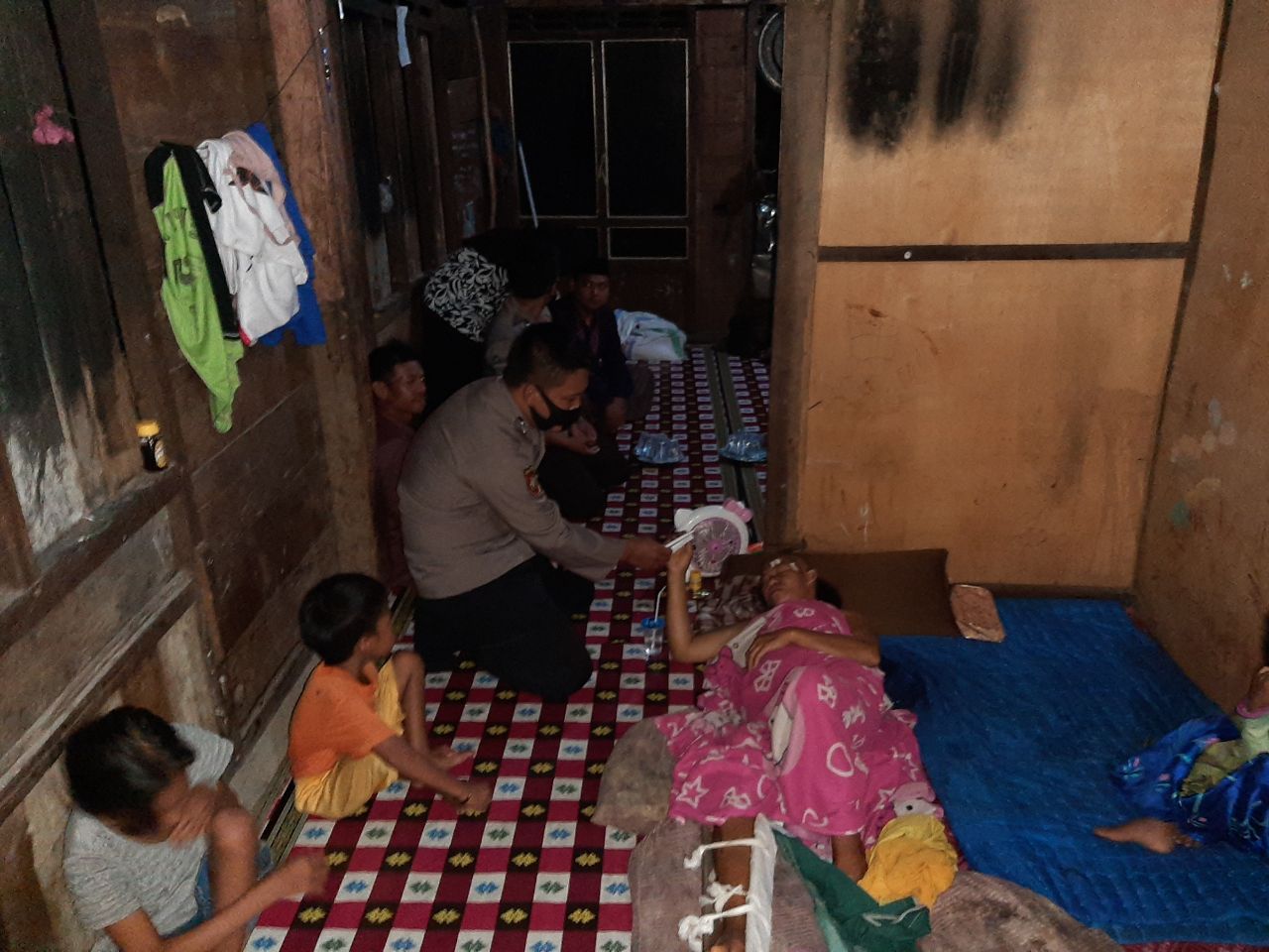 Iptu Rodo Manik mengatakan bahwa bantuan kemanusiaan yang diberikan berupa sembako diserahkan kepada kakek Canong (68) yang mengalami penyakit kanker yang bersarang di lehernya.