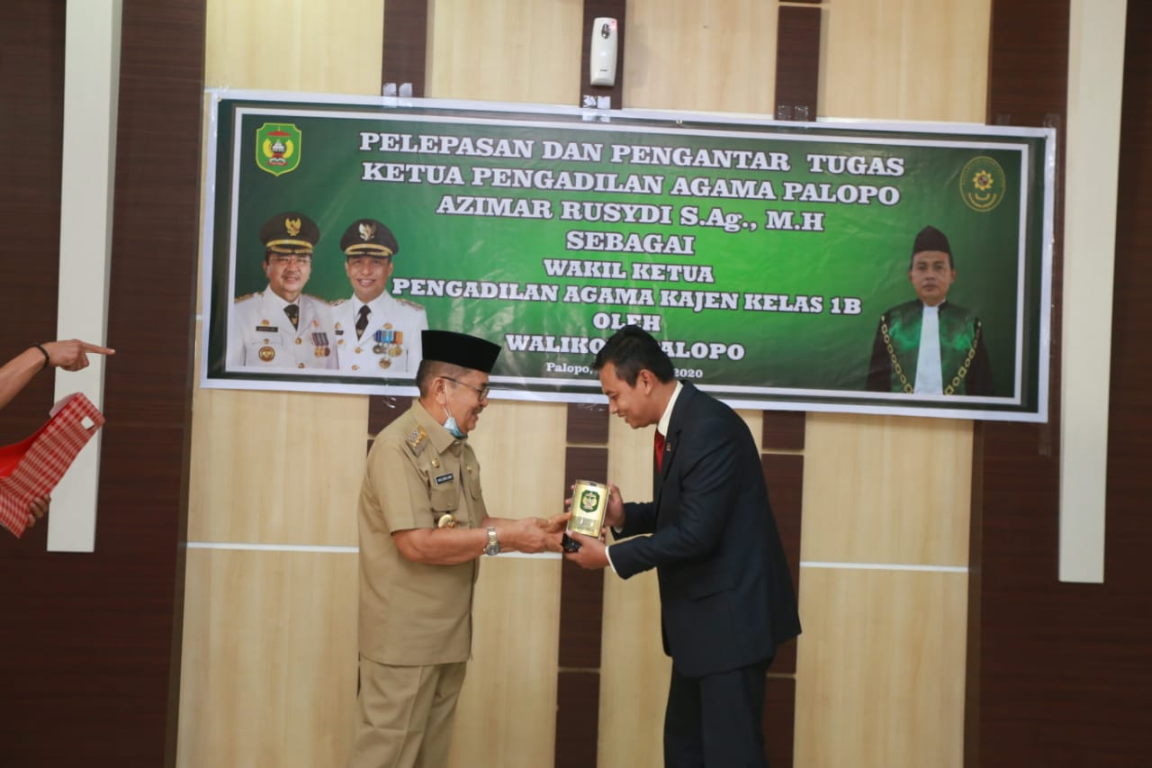 Pada kegiatan pelepasan Walikota memberikan cinderamata kepada Ketua Pengadilan Agama Palopo, Azimar Rusydi.