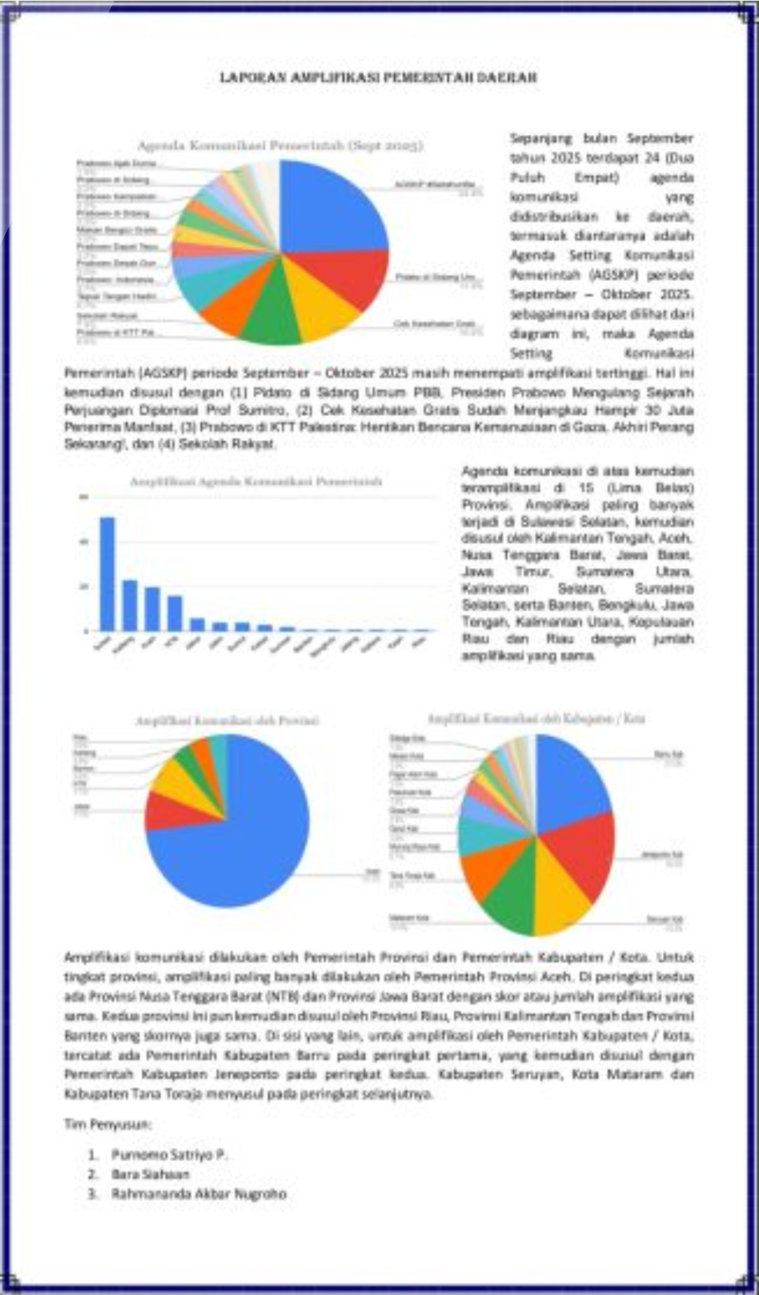 Laporan tersebut merupakan hasil rekapitulasi aktivitas komunikasi dan publikasi dari seluruh pemerintah daerah di Indonesia, baik di tingkat provinsi maupun kabupaten/kota. Penilaian dilakukan untuk mengukur sejauh mana daerah berperan aktif dalam menyebarluaskan informasi dan pesan strategis pemerintah pusat melalui berbagai kanal komunikasi mulai dari situs web resmi, media sosial, hingga media pemberitaan.