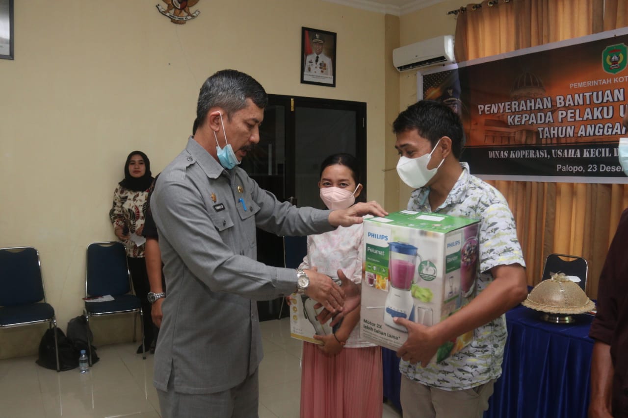 Kepala Dinas Koperasi dan UKM kota Palopo dalam laporannya menyampaikan penyerahan bantuan yang sumber dananya dari APBD Kota Palopo tahun 2021 itu untuk meningkatkan produktifitas pelaku usaha.