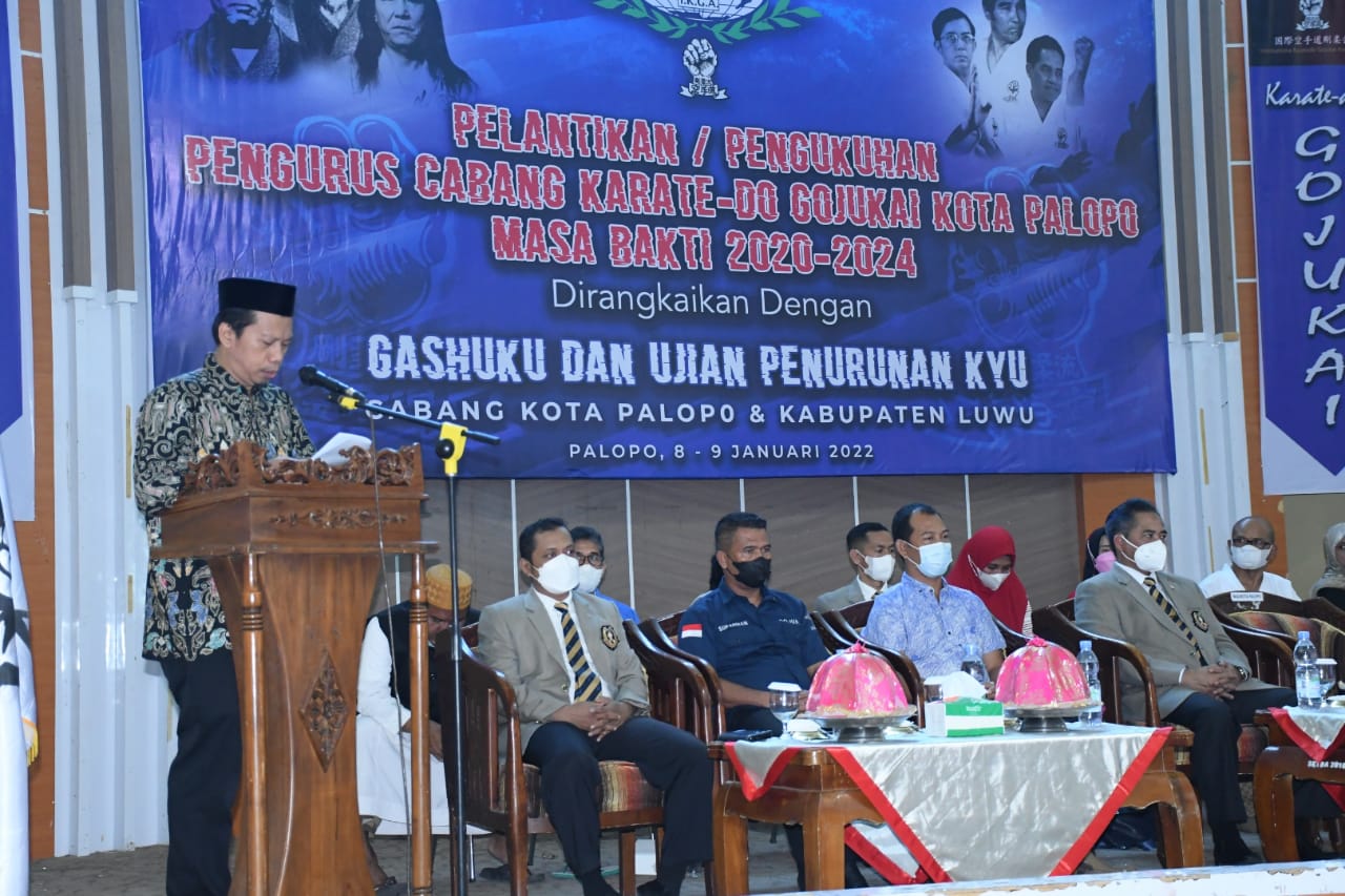 Dalam sambutannya beliau menyampaikan “Pemerintah Kota Palopo sangat mengapresiasi atas keberadaan kepengurusan Cabang Olahraga Karatedo Gojukai Indonesia, yang sangat berperan aktif mendongkrak potensi olahraga Karatedo Gojukai Indonesia Cabang Kota Palopo”.