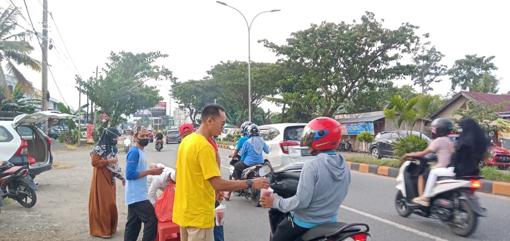 MEDU-ONLINE, PALOPO | Momen bulan suci ramadhan dimanfaatkan komunitas K-System K-Link Palopo untuk berbagi takjil kepada pengguna jalan yang melintas di jalan poros poros Binturu Kota Palopo.
