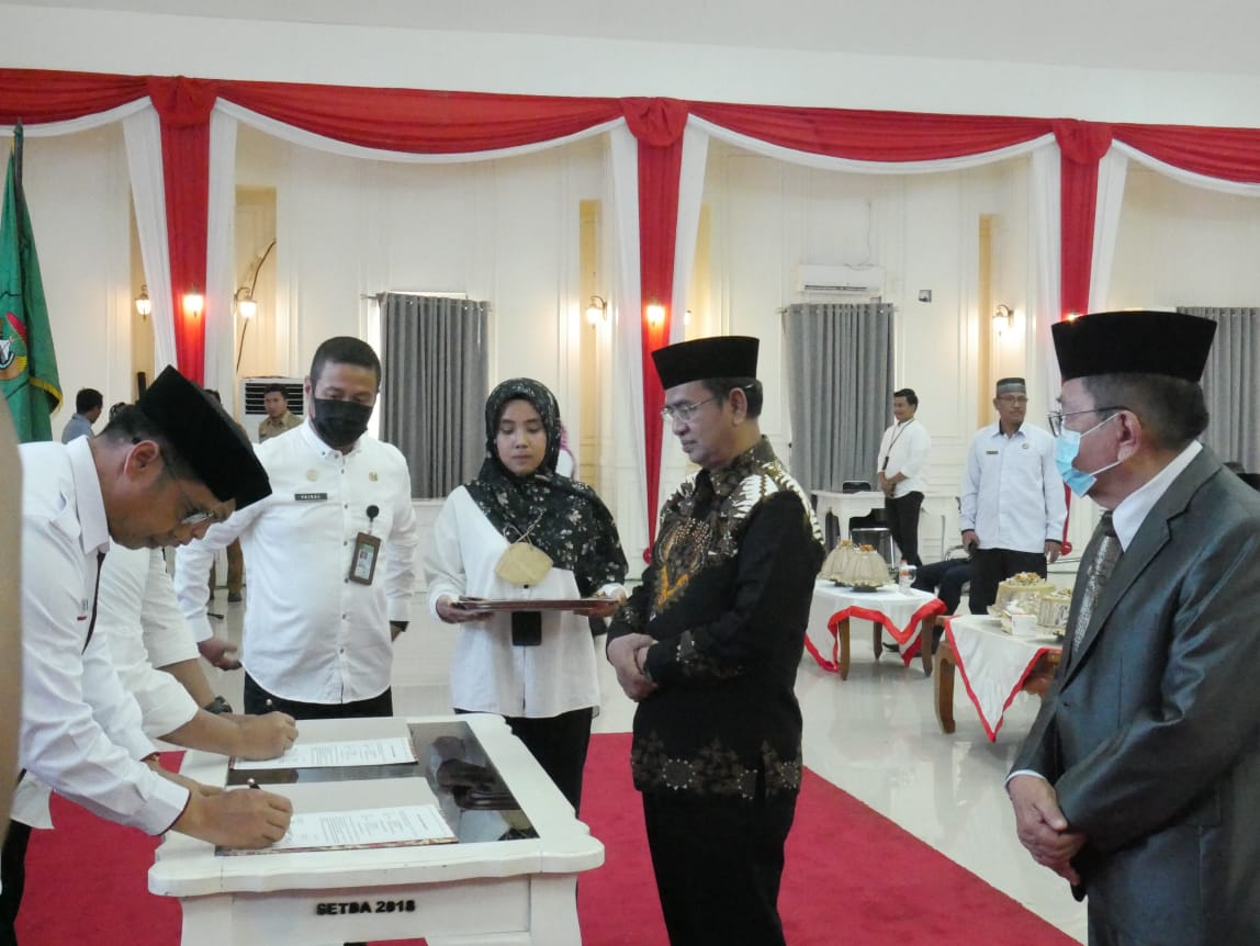 Acara pisah sambut Kepala Kemenag yang berlangsung, Selasa (5/7/2022), di ruang pertemuan Ratona Gedung Balaikota, dihadiri Walikota Palopo, Drs HM Judas Amir MH, beserta Ketua TP-PKK, dr Hj Utia Sari Judas M.Kes, dan Kepala Kemenag Provinsi Sulsel, H Khoeroni.