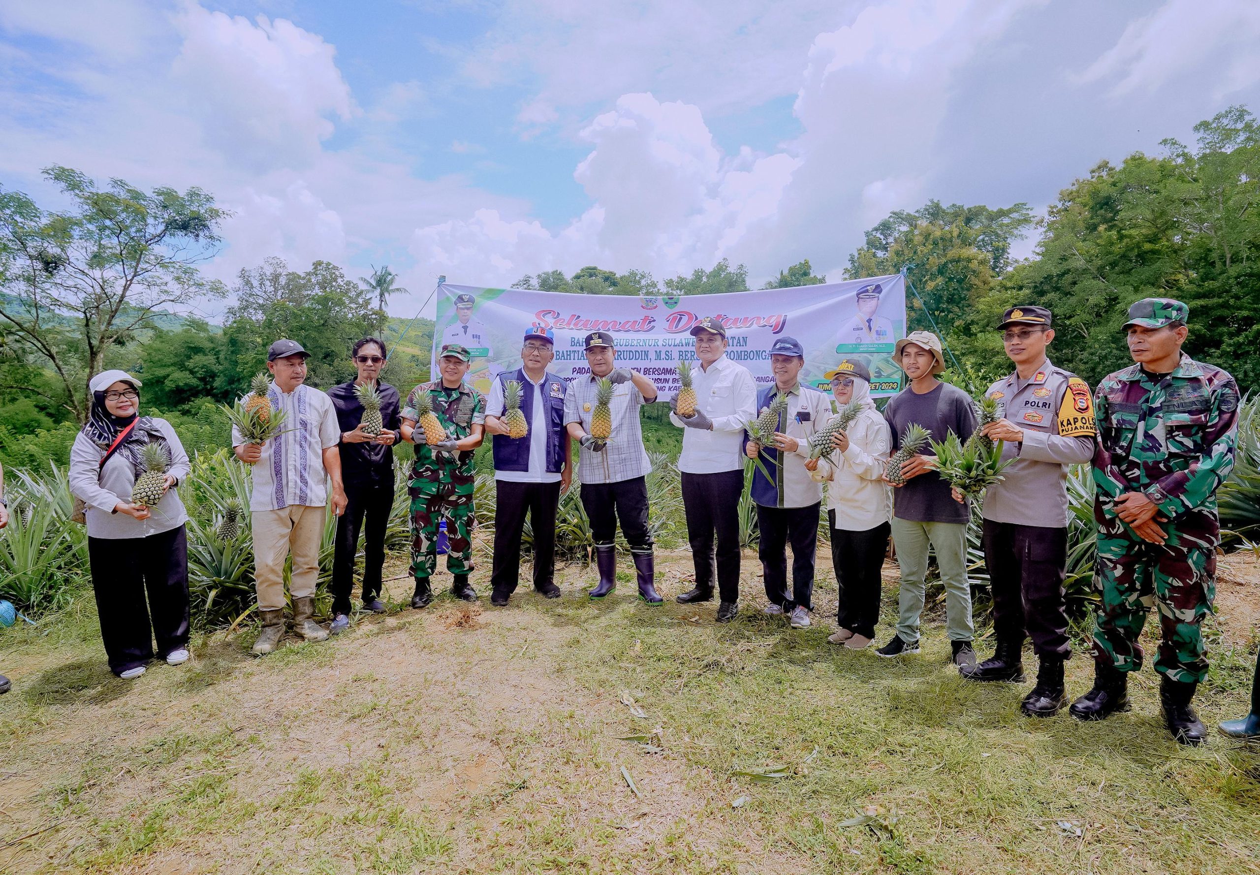 Dalam Kunkernya itu, Pj. Gubernur didampingi Bupati Barru melakukan panen sekaligus menanam Nanas Madu di dusun Bette, desa Jangan Jangan, kecamatan Pujananting.