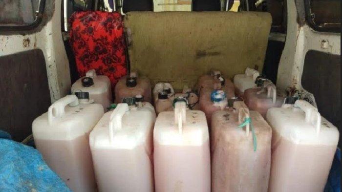 SE diamankan dalam Operasi Cipta Kondisi (Cipkon) lantaran kedapatan membawa 160 liter ballo, Senin (3/10/2022). Ballo tersebut dimasukkan ke dalam jerigen dan diangkut dengan mobil.