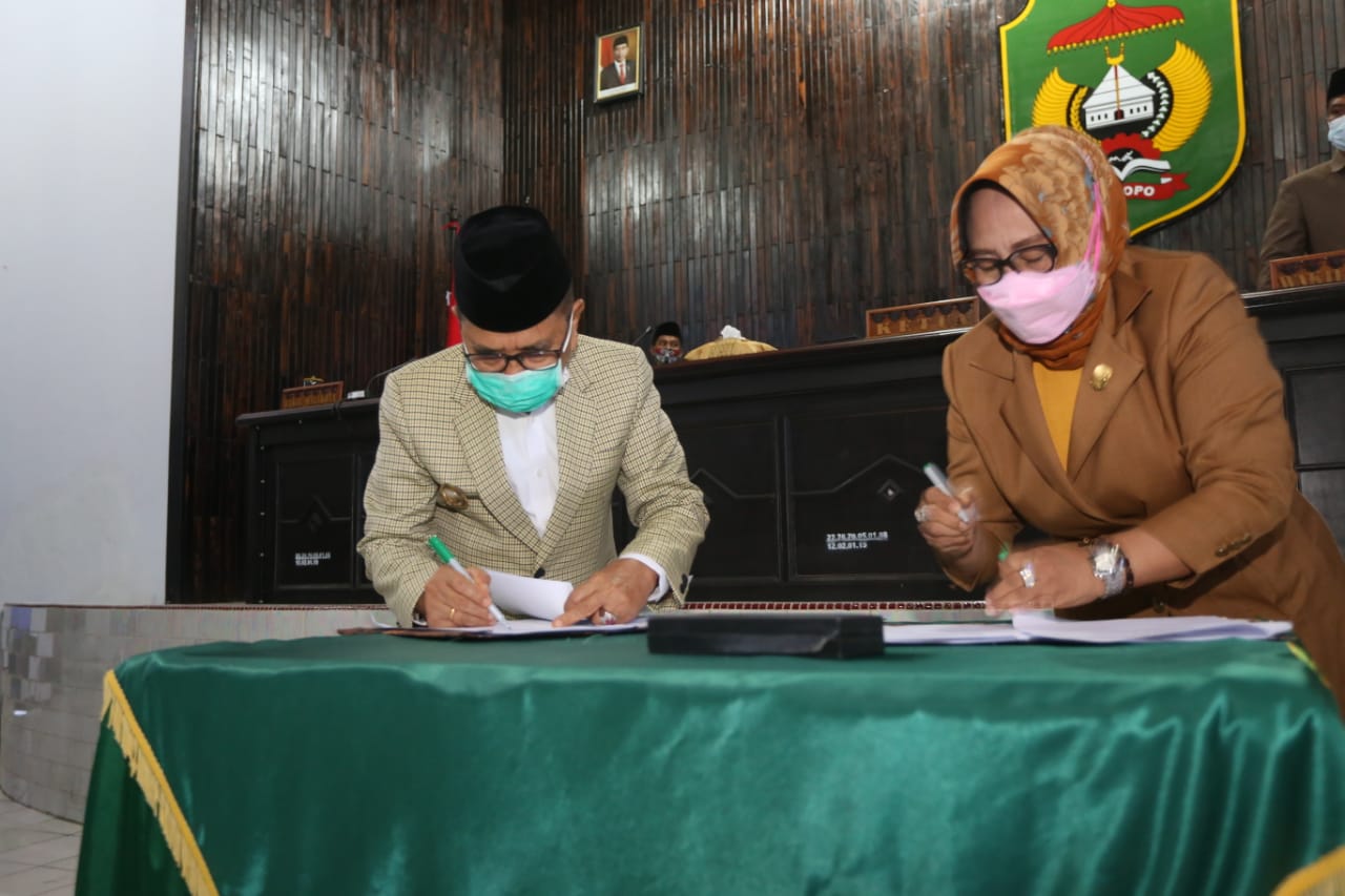 Penandatanganan DPRD kota palopo tentang Persetujuan terhadap Rancangan Peraturan Daerah (ranperda) Tentang Perubahan atas Peraturan Daerah Nomor 1 Tahun 2019 tentang Rencana Pembangunan Jangka Menengah Daerah Kota Palopo Tahun 2018-2023 untuk ditetapkan menjadi Peraturan Daerah.