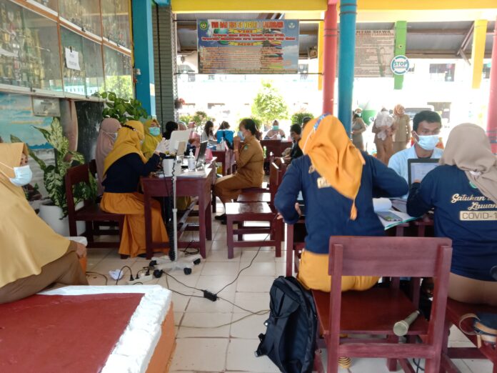 MEDU-ONLINE.PALOPO — SDN 1 Lalebata jadi tuan Rumah vaksinasi dosis pertama Senin 29/3/2021 kemarin.
