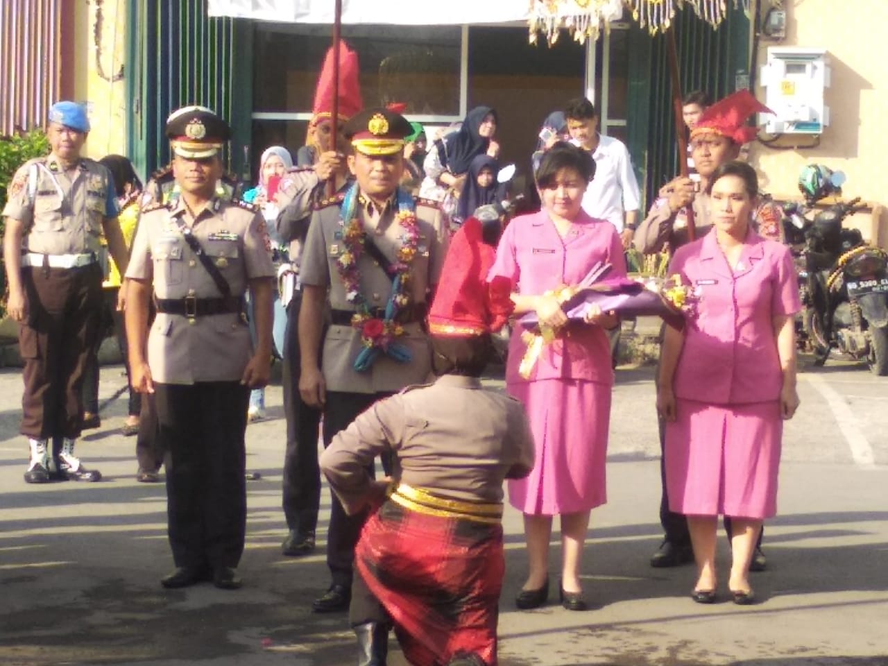 Acara sakral ini digelar tradisi penyambutan Kapolres Gowa yang baru ditandai dengan upacara dan tarian Paduppa adat Bugis Gowa serta pengalungan bunga, didepan pintu gerbang Polres Gowa, Senin (11/11/2019), Sore