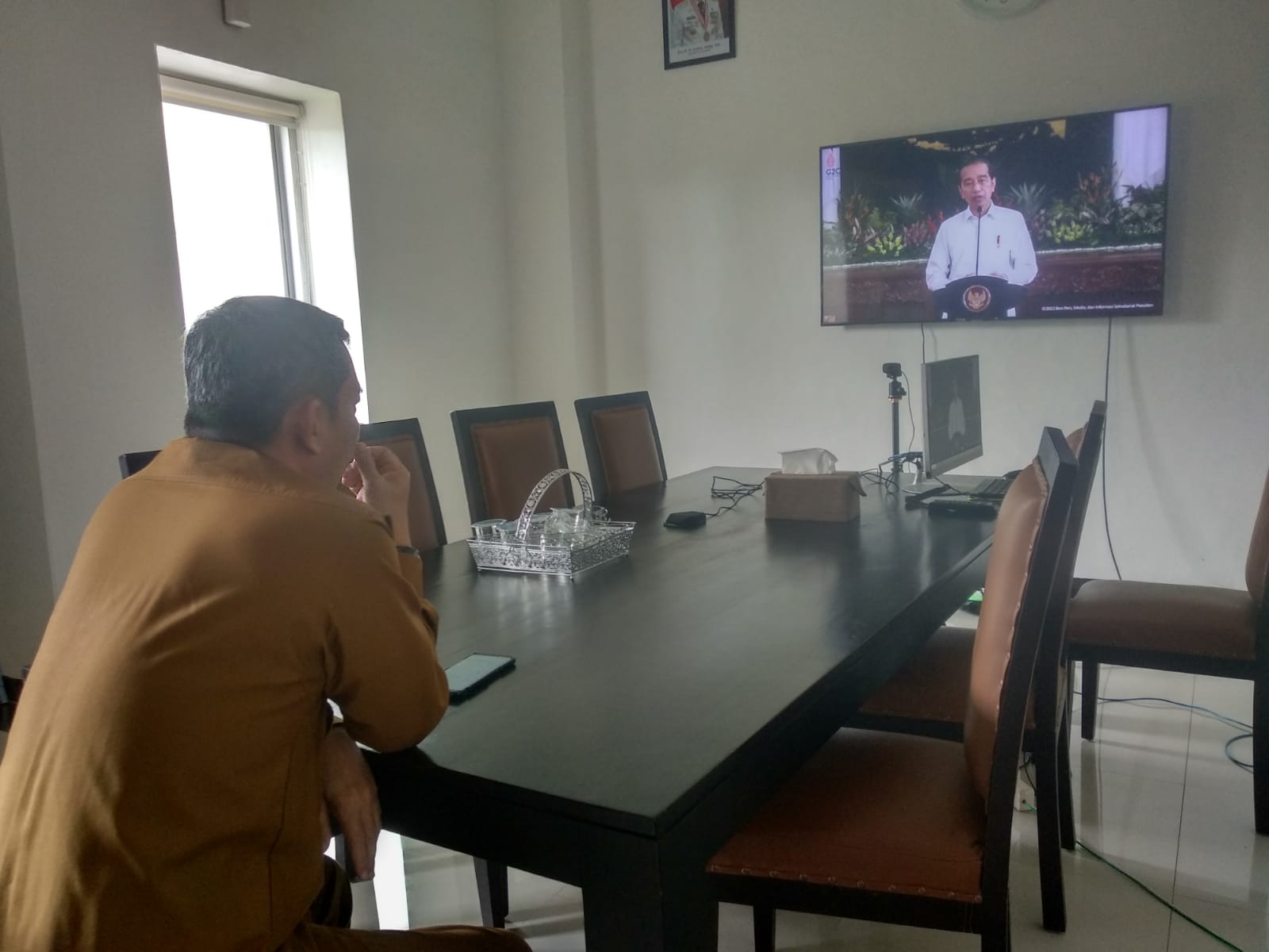MEDU-ONLINE, PALOPO | Sekretaris Daerah Kota Palopo, Drs Firmanza DP SH MSi mengikuti kegiatan pembukaan Rakernas Basarnas yang dibuka langsung oleh Presiden Republik Indonesia secara daring melalui aplikasi Zoom Meeting, yang bertempat di Ruangan Kepala Bappeda, Senin (21/02/2022).