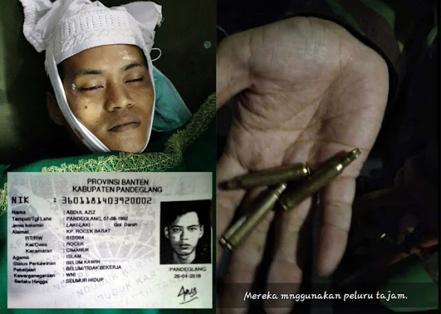 Abdul Aziz merupakan pemuda kelahiran Pandeglang, 07 Juni 1992. Diduga, Aziz meninggal akibat terkena tembakan peluru tajam.