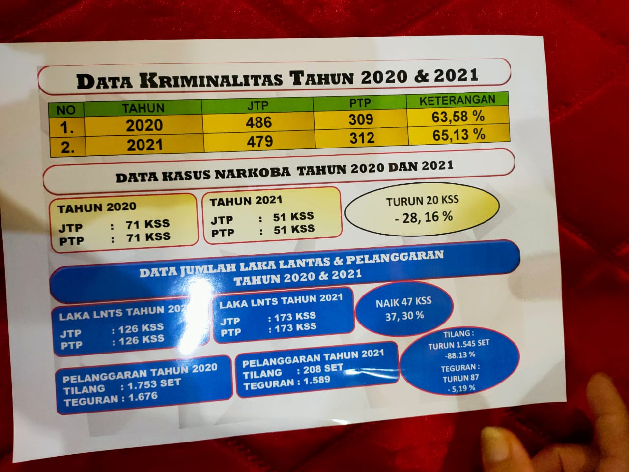 “Secara keseluruhan, untuk angka kriminalitas mengalami penurunan sekitar 2 persen lebih, dibanding tahun 2020,” papar Kapolres.