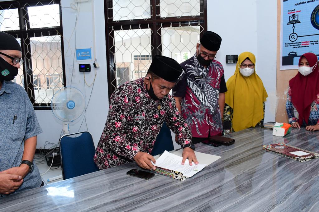 MEDU-ONLINE.PALOPO — Serah terima jabatan (Sertijab) kepala Dinas kominfo Kota Palopo dari pejabat lama Baso Ahmad SH, kepada pejabat baru, Dr. Baso Sulaiman, dilaksanakan di ruang rapat kantor Dinas Kominfo Kota Palopo, Kamis 20/5/2021.