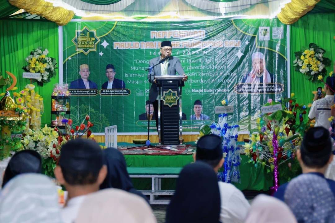 Dengan gaya khasnya, ia mengingatkan jamaah agar sungguh-sungguh mendengarkan hikmah Maulid dari para ustaz. “Kalau Pak Ustaz sudah ceramah, tolong jangan lagi ramai-ramai bicara di belakang. Dengarkan, pahami, lalu amalkan dalam kehidupan keluarga. Nabi Muhammad mengajarkan kita sabar, dan itu perlu dilatih,” ucapnya.