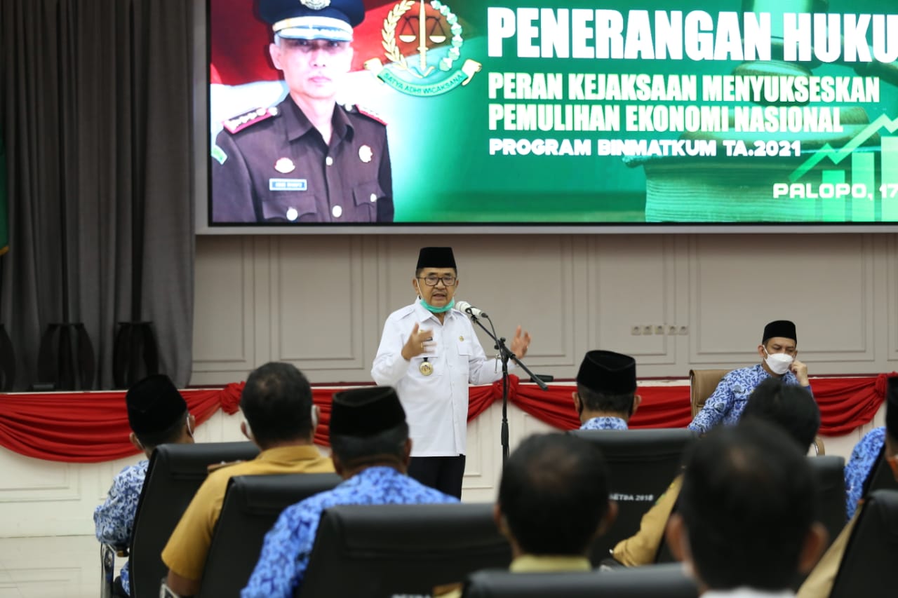 MEDU-ONLINE.PALOPO — Penerangan Hukum dengan tema “Peran Kejaksaan Menyukseskan Pemulihan Ekonomi Nasional” yang diselenggarakan oleh Kejaksaan Negeri Palopo di Ruang Pertemuan Ratona Kantor Walikota Palopo, Rabu 17/3/2021.