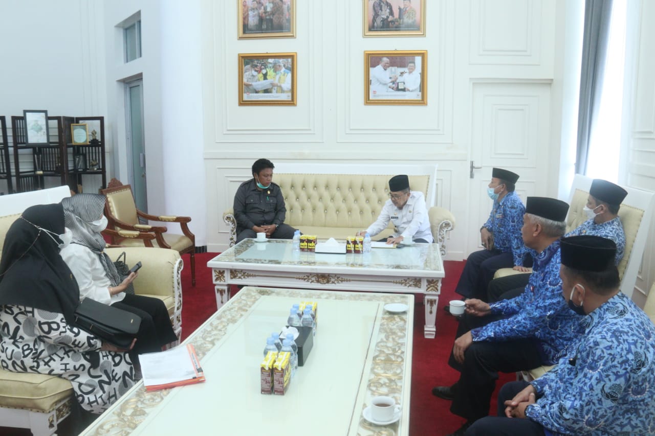 Walikota Palopo dalam menerima kunjungan Ketua DPRD Luwu juga didampingi Sekretaris Daerah kota palopo, Drs. Firmanza DP, SH. M.Si, Asisten Pemerintahan, Burhan Nurdin, Inspektur dan Kepala Bidang Aset BPKAD kota palopo, Supiati. (RM)